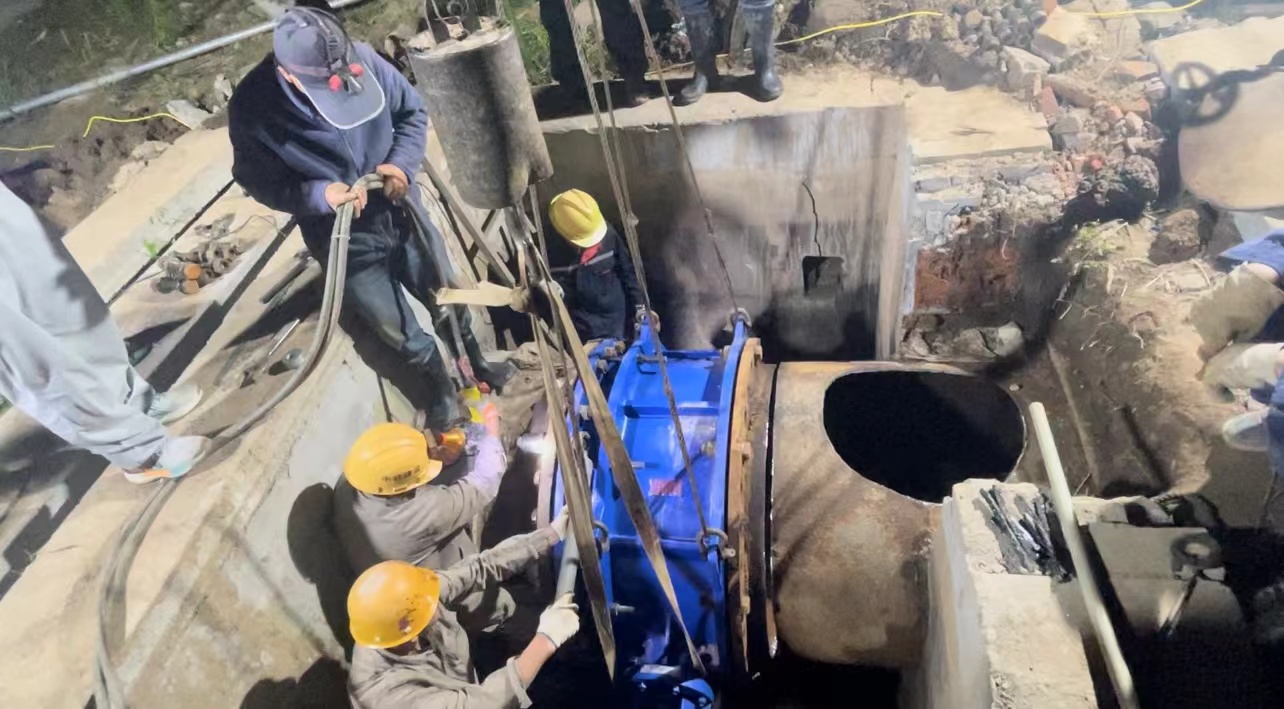 5月10日清晨5:00,管網(wǎng)管理所配合網(wǎng)拓水務(wù)工程有限公司完成了對(duì)三水廠DN1200蝶閥的更換。