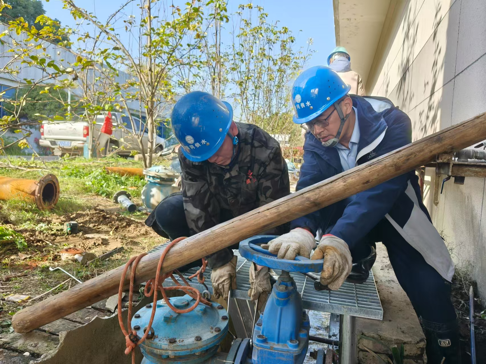 一期沉淀池作為水廠穩(wěn)定運行的關(guān)鍵,其角閥排泥管因長期磨損腐蝕,排泥效率與沉淀效果受到影響。在公司的安排部署下,三水廠迅速響應(yīng),立即啟動角閥換新任務(wù)。為確保更換的精確性,機修團隊先進行了現(xiàn)場勘查與精確測量,制定了詳盡的更換方案。施工中,精確定位需更換的排泥管,拆除舊管并清理連接部位,確保新管穩(wěn)固安裝。安裝過程中,嚴格把控安裝精度與密封性,每套安裝完畢即進行壓力測試,確保無誤。