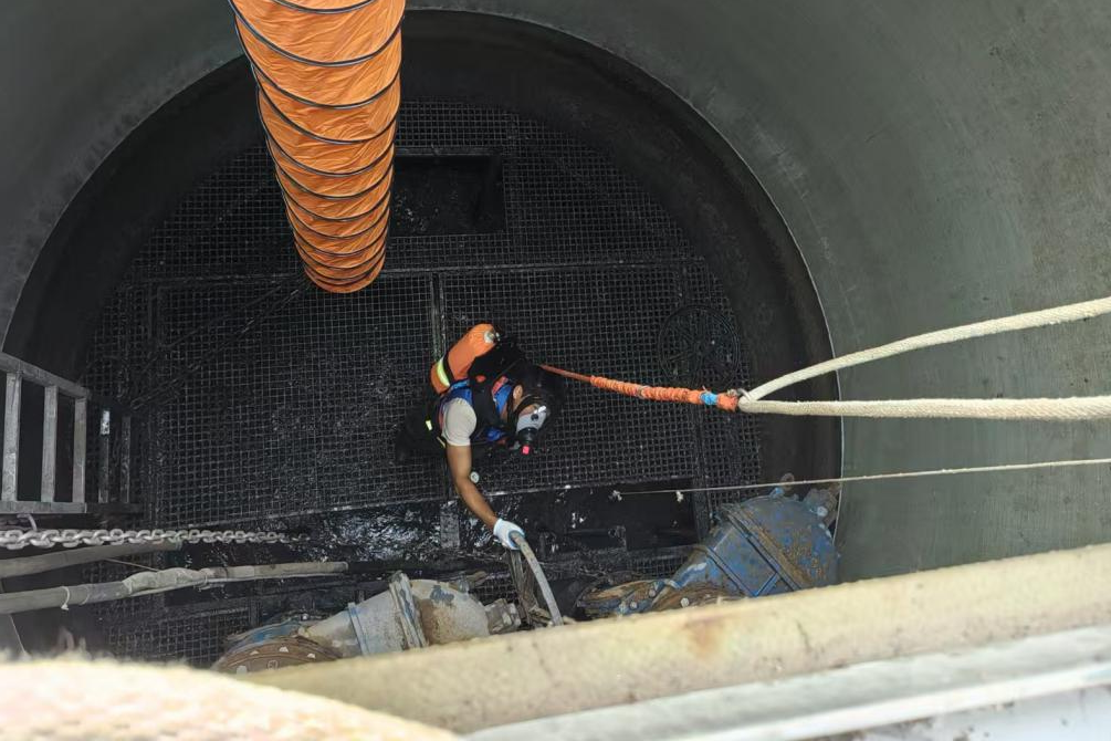 12月14日上午10時,為確保更換工作的順利進行以及維修人員的人身安全,泵站嚴格遵守《安全生產法》及工貿企業(yè)有限空間作業(yè)的相關規(guī)定。在進行了24小時的安全通風,并確認泵坑內空氣氧含量達到安全標準后,維修人員在完備的安全保障措施下,多次下潛至泵坑底部,成功打撈起4號潛污泵斷裂的葉輪,并順利完成了新潛污泵的更換與安裝工作。