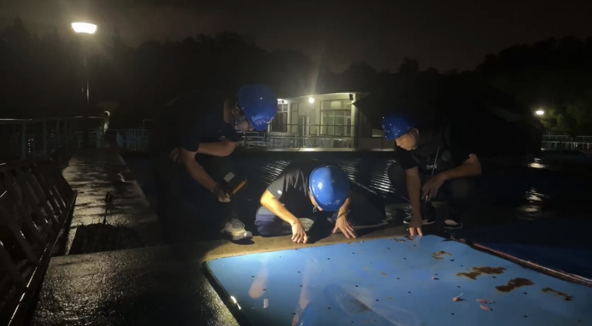 當(dāng)晚,公司黨委書(shū)記、執(zhí)行董事、總經(jīng)理段欣榮帶領(lǐng)相關(guān)人員,頂著大雨連夜對(duì)二水廠、三水廠廠區(qū)防雨防澇工作進(jìn)行現(xiàn)地巡查,重點(diǎn)檢查取水浮船的錨固,排查廠區(qū)排水系統(tǒng)的通暢,泵房排水設(shè)備的運(yùn)行和備用,并對(duì)取水口架空電力線路、廠區(qū)排澇系統(tǒng)進(jìn)行了巡查,要求密切關(guān)注水質(zhì)變化。
