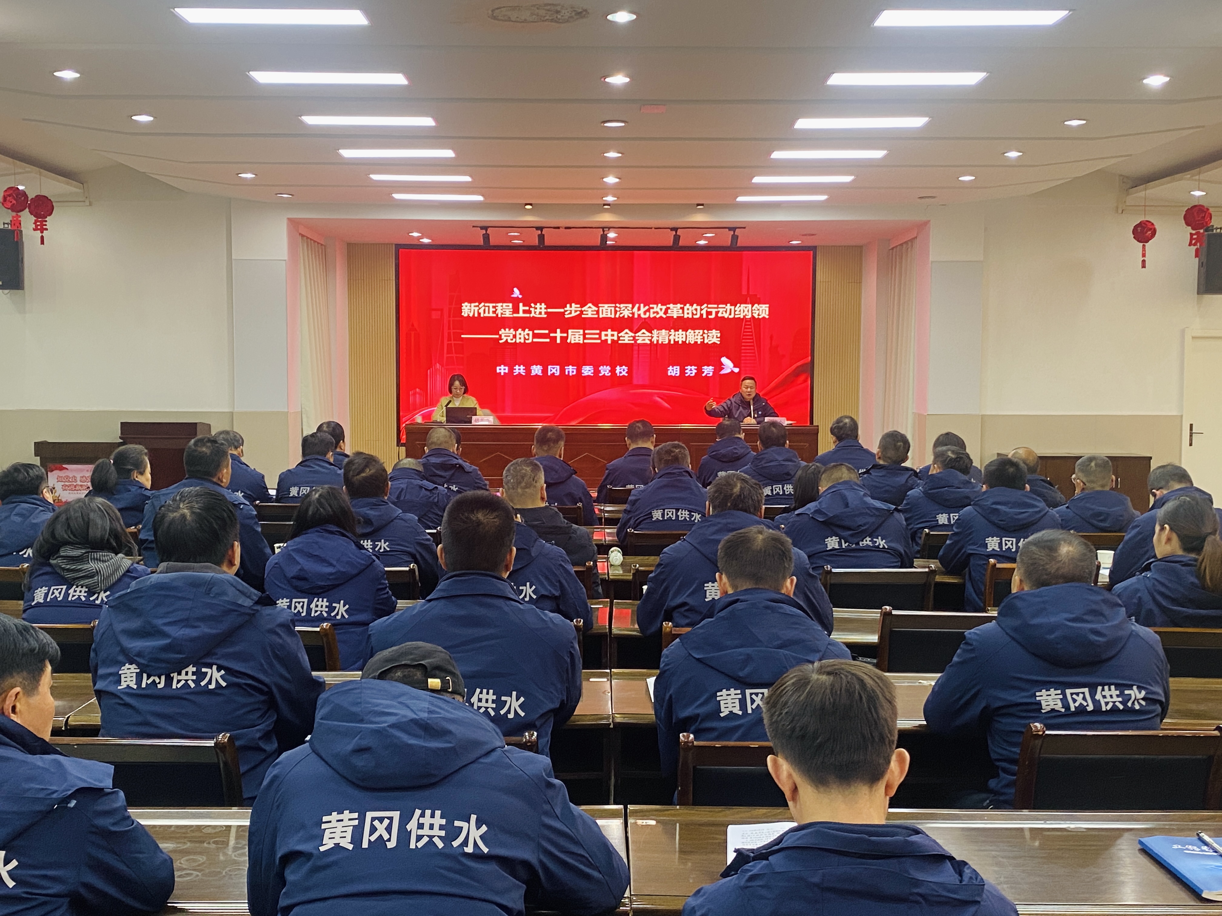 為深入貫徹黨的二十屆三中全會精神,12月13日下午,公司邀請市委黨校黨建教研室副主任胡芬芳講授了一場主題為“新征程上全面深化改革的行動綱領”的專題黨課。會議由公司黨委書記、總經理段欣榮主持,公司黨政領導班子成員、中層副職以上干部、全體黨員及入黨積極分子100余人參加了學習。