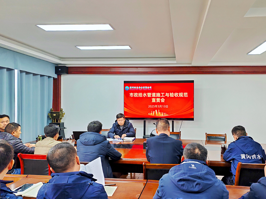 為進(jìn)一步提升《黃岡城區(qū)供水管網(wǎng)漏損治理及老化供水設(shè)施更新改造項目》的施工質(zhì)量,確保工程順利推進(jìn),3月13日上午,公司在四樓會議室舉辦給水管道工程施工及驗收規(guī)范專題培訓(xùn)。此次培訓(xùn)旨在為公司提前介入該項目,派遣現(xiàn)場監(jiān)理員跟蹤施工現(xiàn)場,實行施工過程中的質(zhì)量監(jiān)督管理,并為工程竣工驗收及后續(xù)運營管理打下堅實基礎(chǔ)。培訓(xùn)會由公司副經(jīng)理劉廣主持,宣教部部長周偉授課,公司黨委書記、總經(jīng)理段欣榮出席,生產(chǎn)管理中心、運維服務(wù)中心等相關(guān)單位(部室)參加。