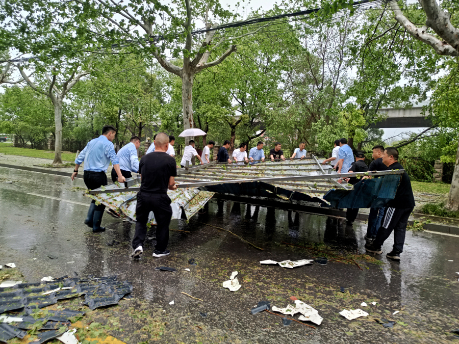 極端天氣后,城市秩序亟待恢復。公司黨委主動作為,組織人員奔赴公司前新港大道路段,齊心協(xié)力清理被大風吹倒的屋頂板和廣告牌,爭分奪秒疏通道路,助力城市交通恢復順暢,用實際行動詮釋社會責任,展現(xiàn)強大凝聚力與使命感。