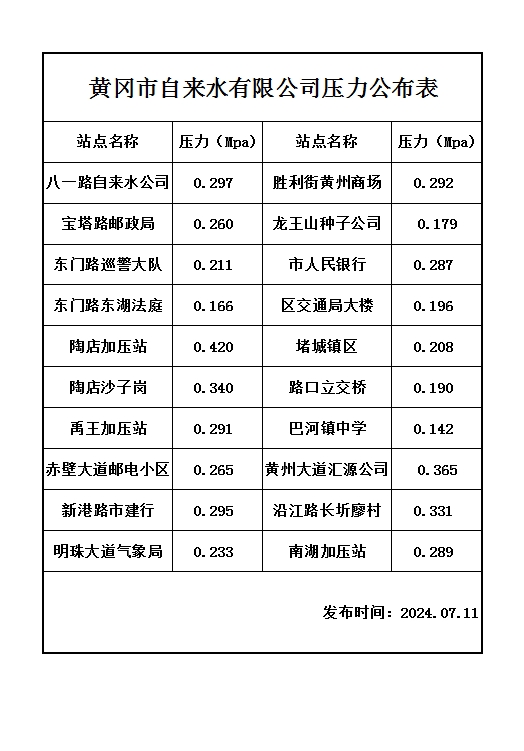 2024年07月11日水壓報告表