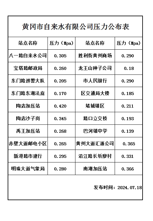 2024年07月18日水壓報告表