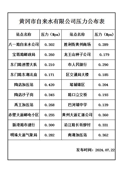 2024年07月22日水壓報告表