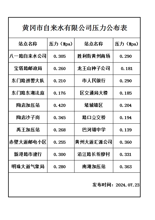 2024年07月23日水壓報告表