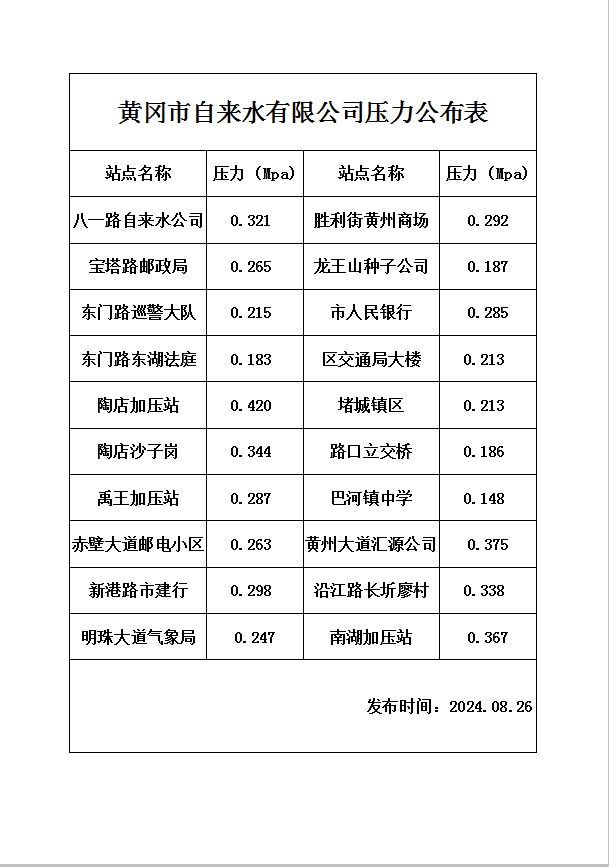 2024年08月26日水壓報告表
