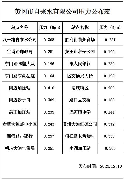 2024年12月10日水壓報告表
