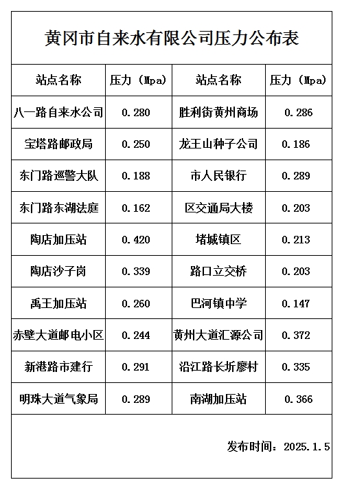2025年1月5日水壓報告表