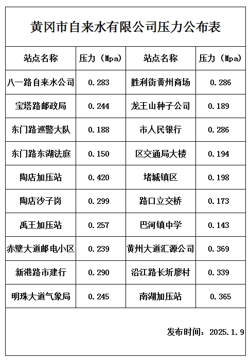 2025年1月9日水壓報(bào)告表