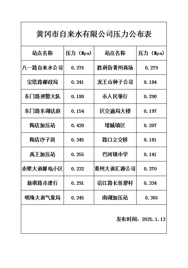 2025年1月13日水壓報(bào)告表