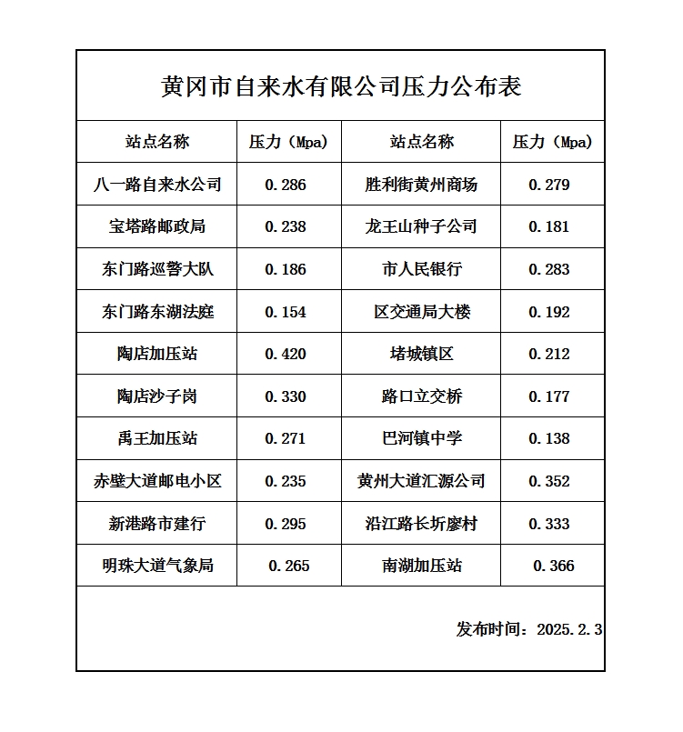2025年2月3日水壓報告表