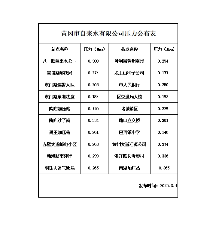2025年3月04日水壓報告表