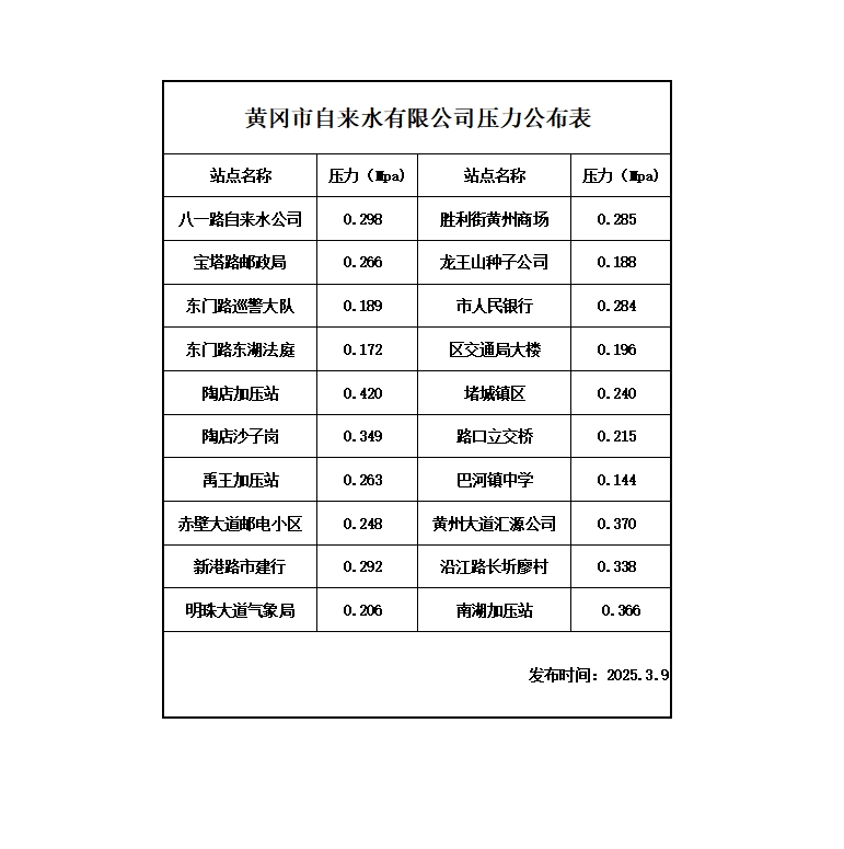 2025年3月09日水壓報(bào)告表