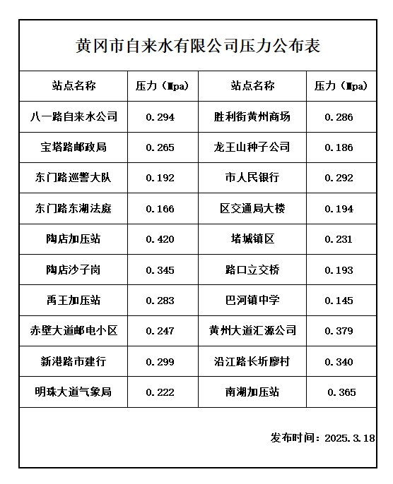 2025年3月18日水壓報告表