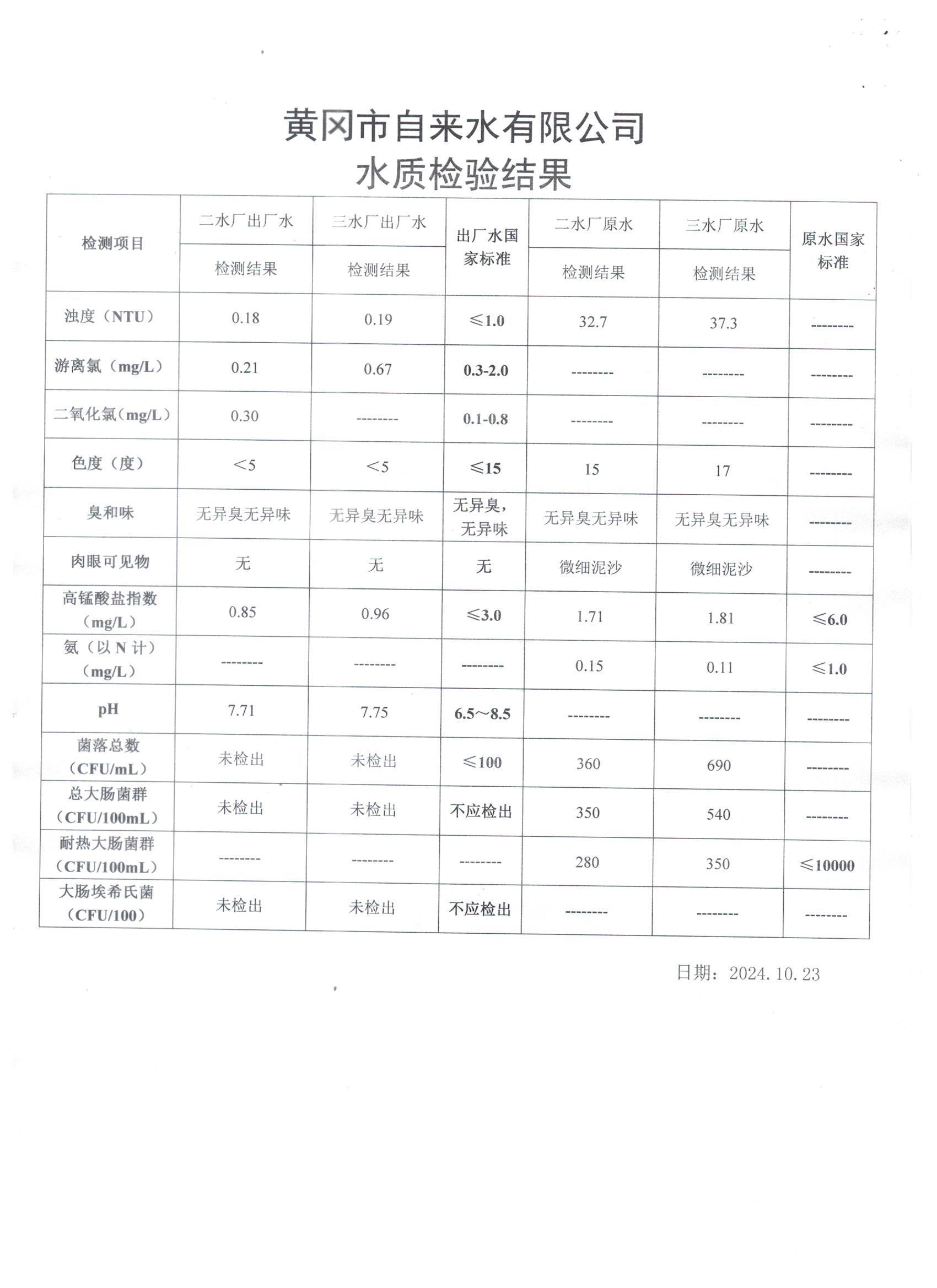 2024年10月23日水質檢測日報表