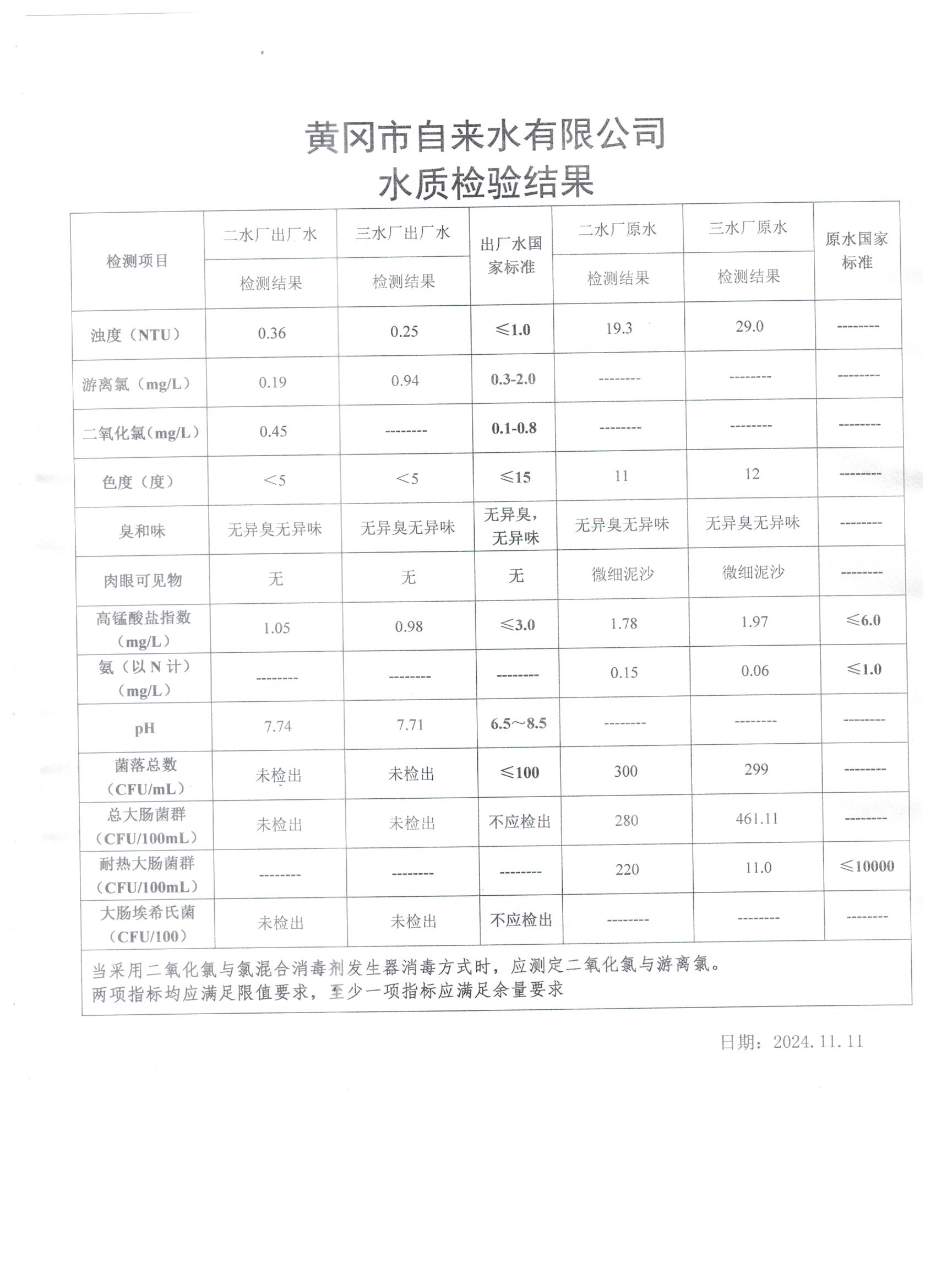 2024年11月11日水質檢測日報表