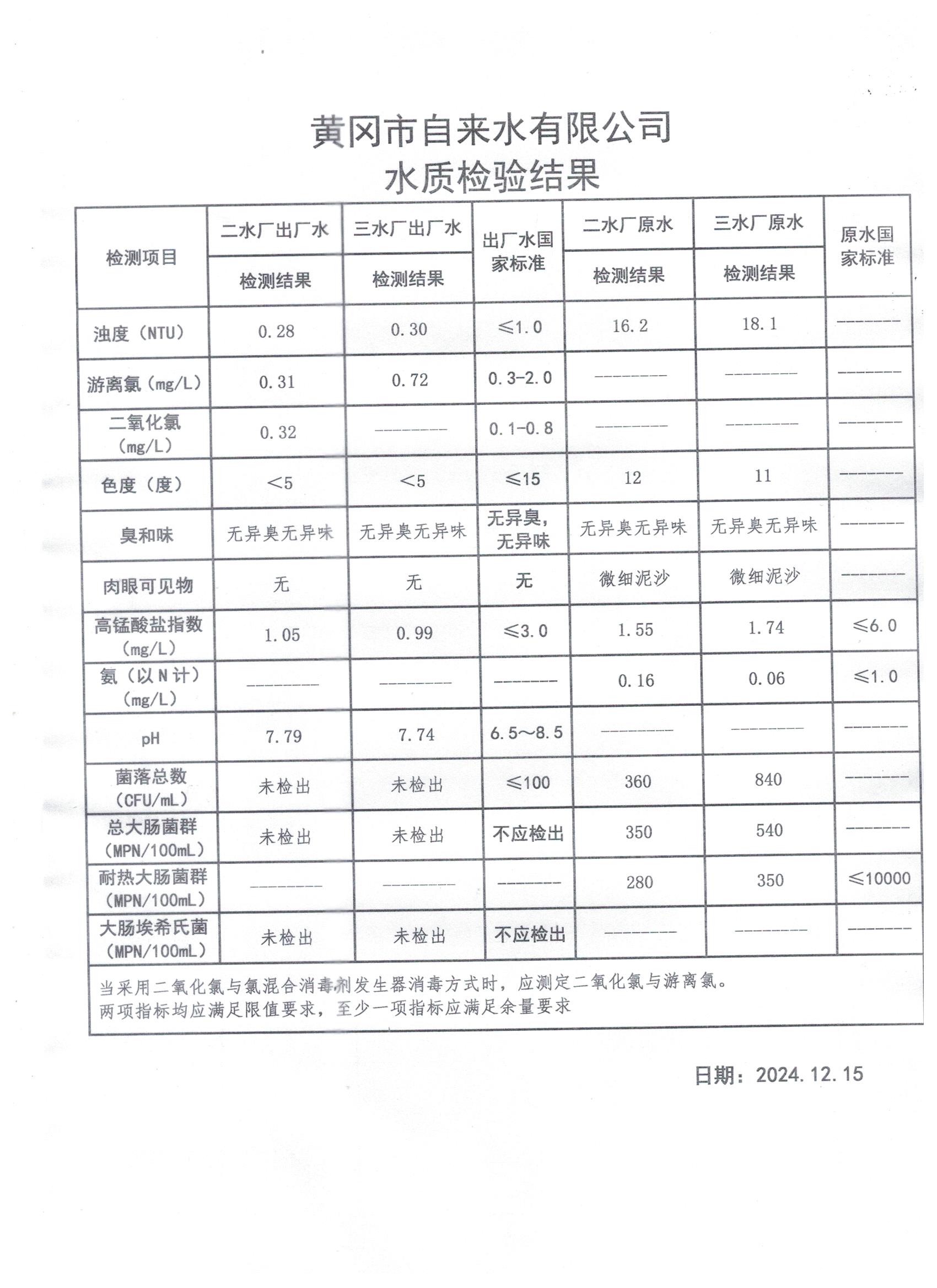 2024年12月15日水質(zhì)檢測(cè)日?qǐng)?bào)表