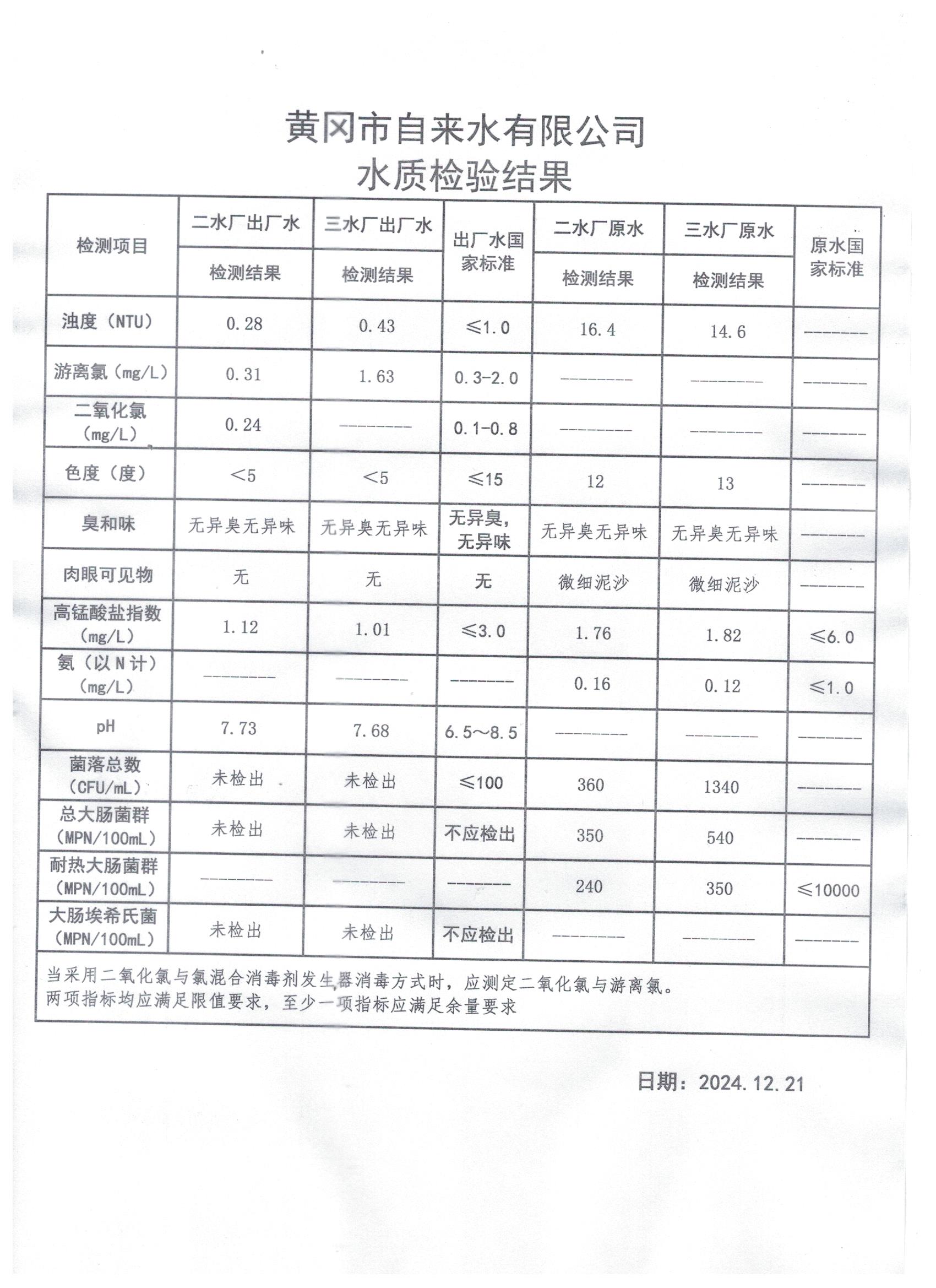 2024年12月21日水質(zhì)檢測(cè)日?qǐng)?bào)表