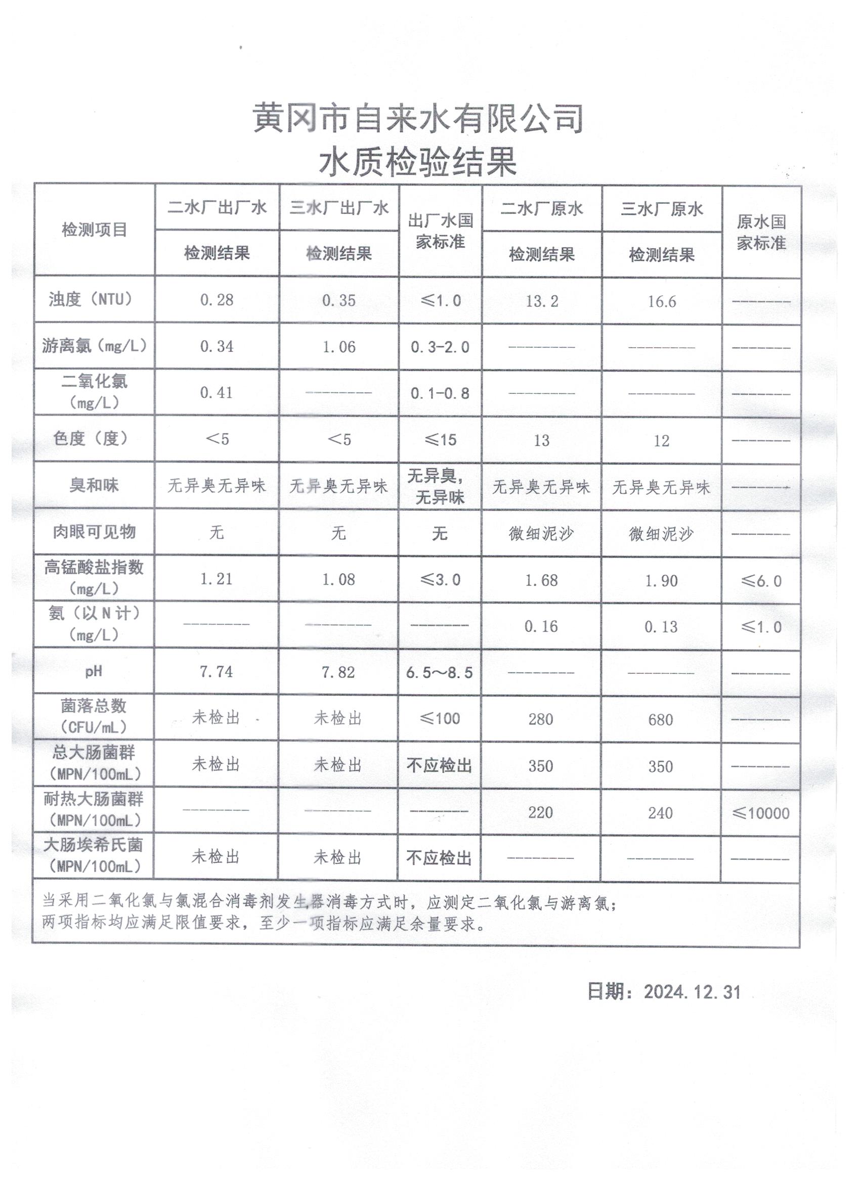 2024年12月31日水質檢測日報表