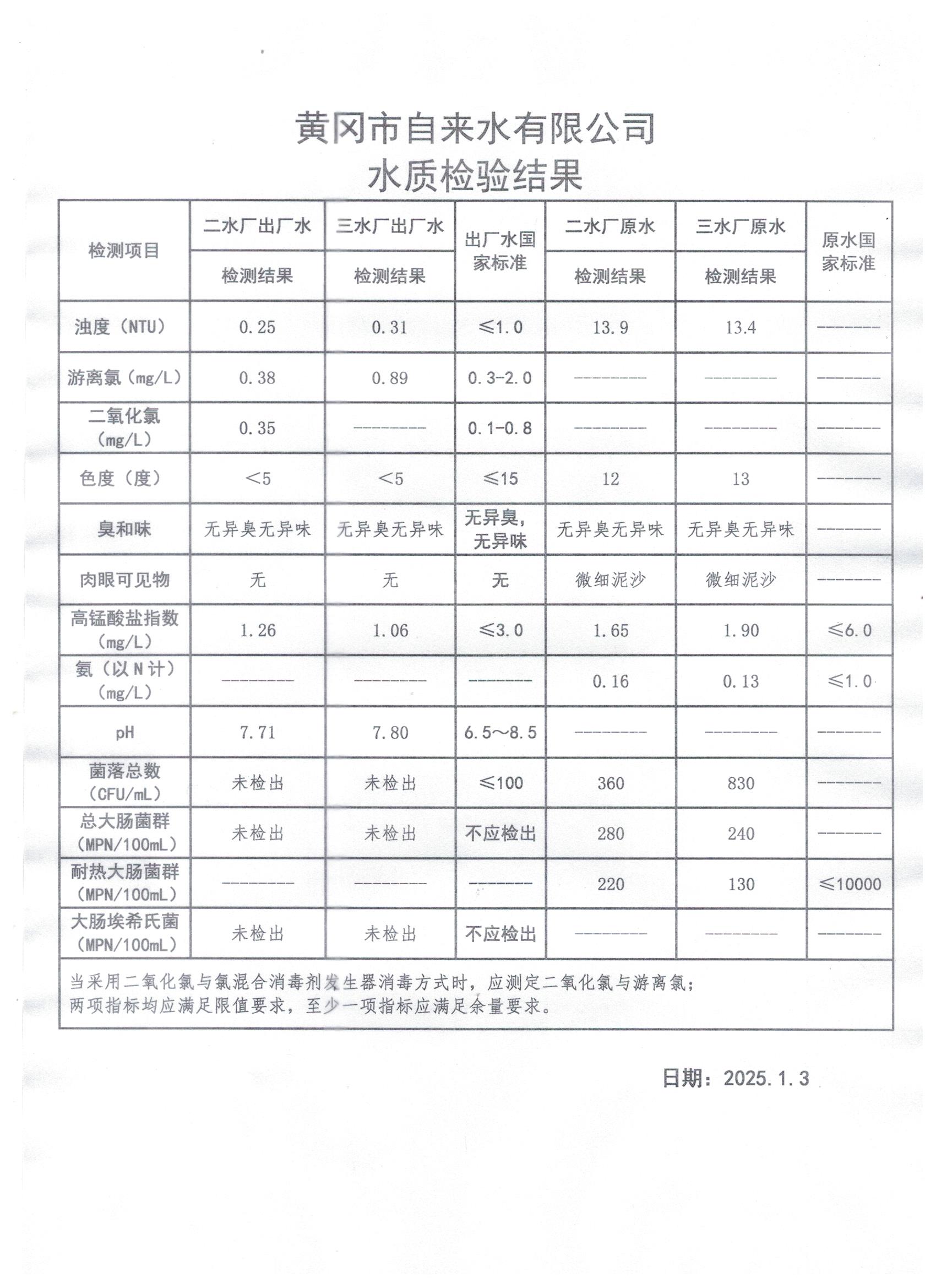 2025年1月3日水質(zhì)檢測日報(bào)表