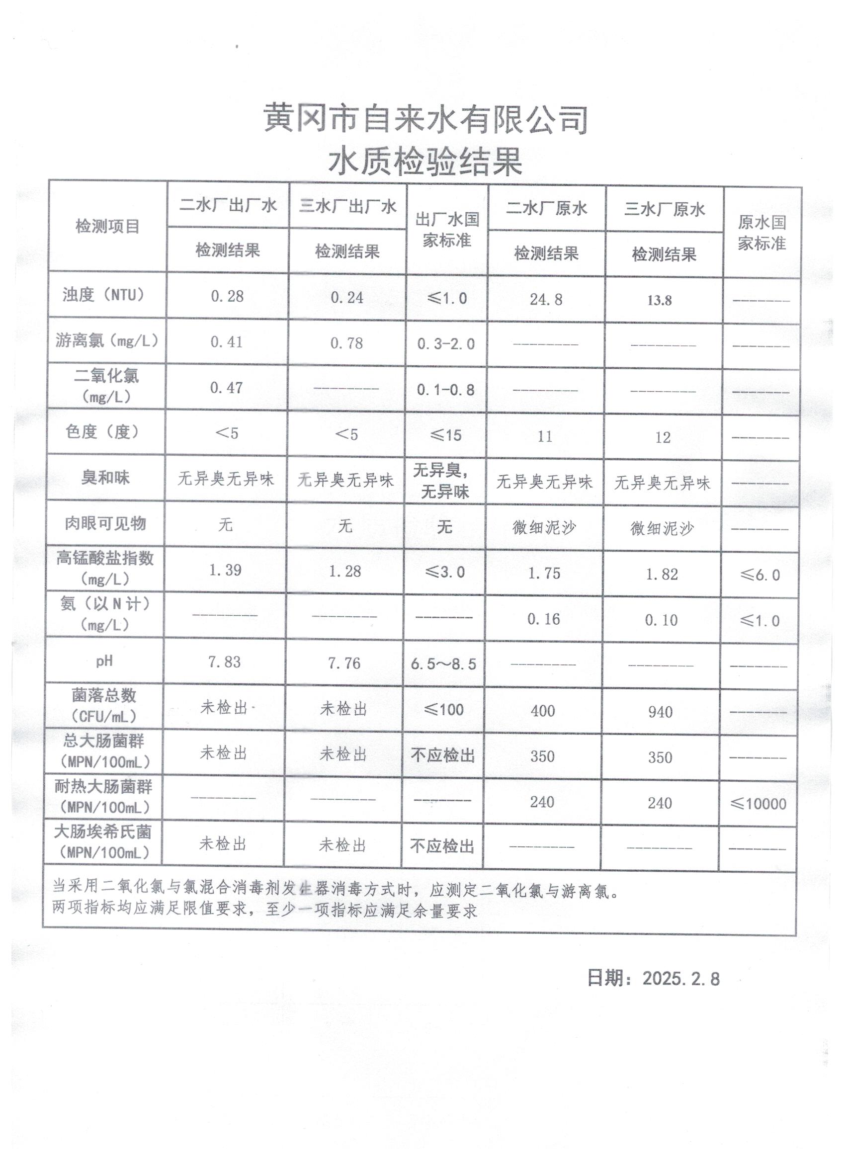 2025年2月8日水質(zhì)檢測(cè)日?qǐng)?bào)表