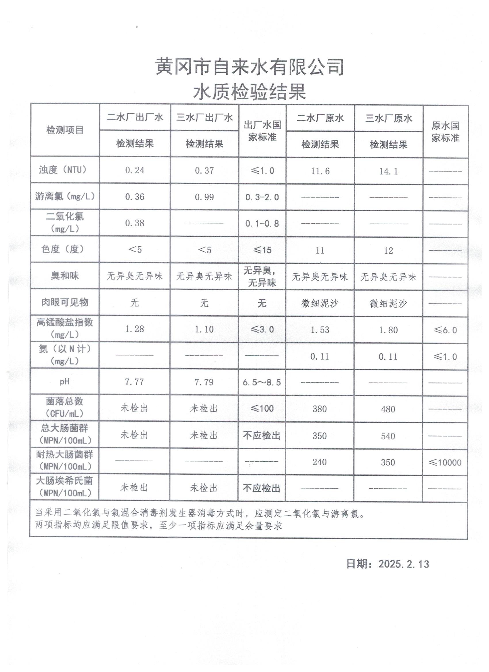 2025年2月13日水質(zhì)檢測日報(bào)表