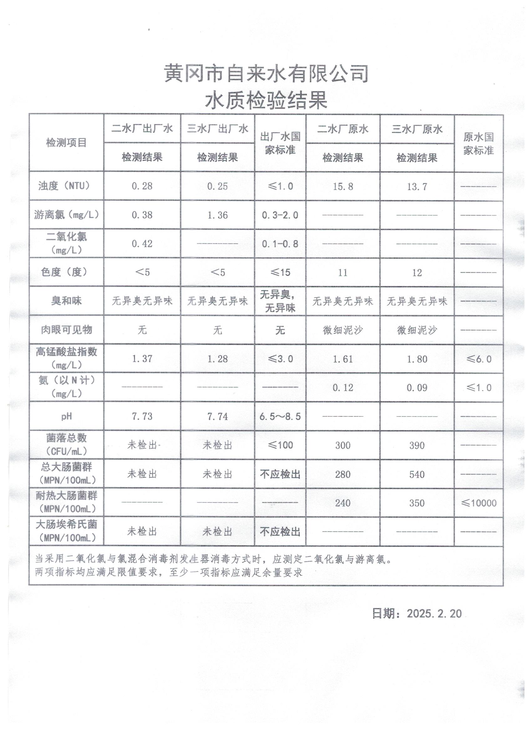 2025年2月20日水質檢測日報表