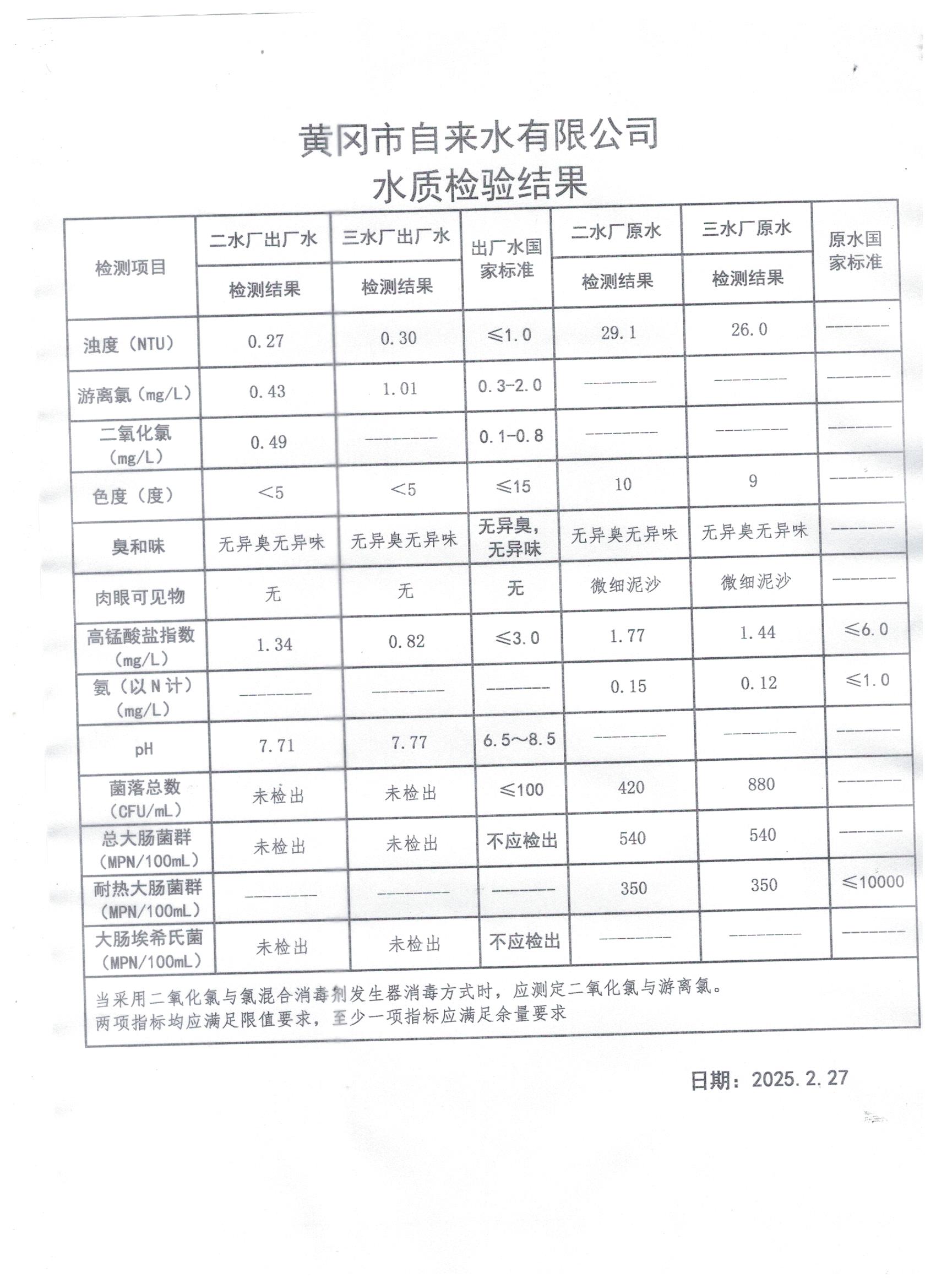 2025年2月27日水質(zhì)檢測日報表