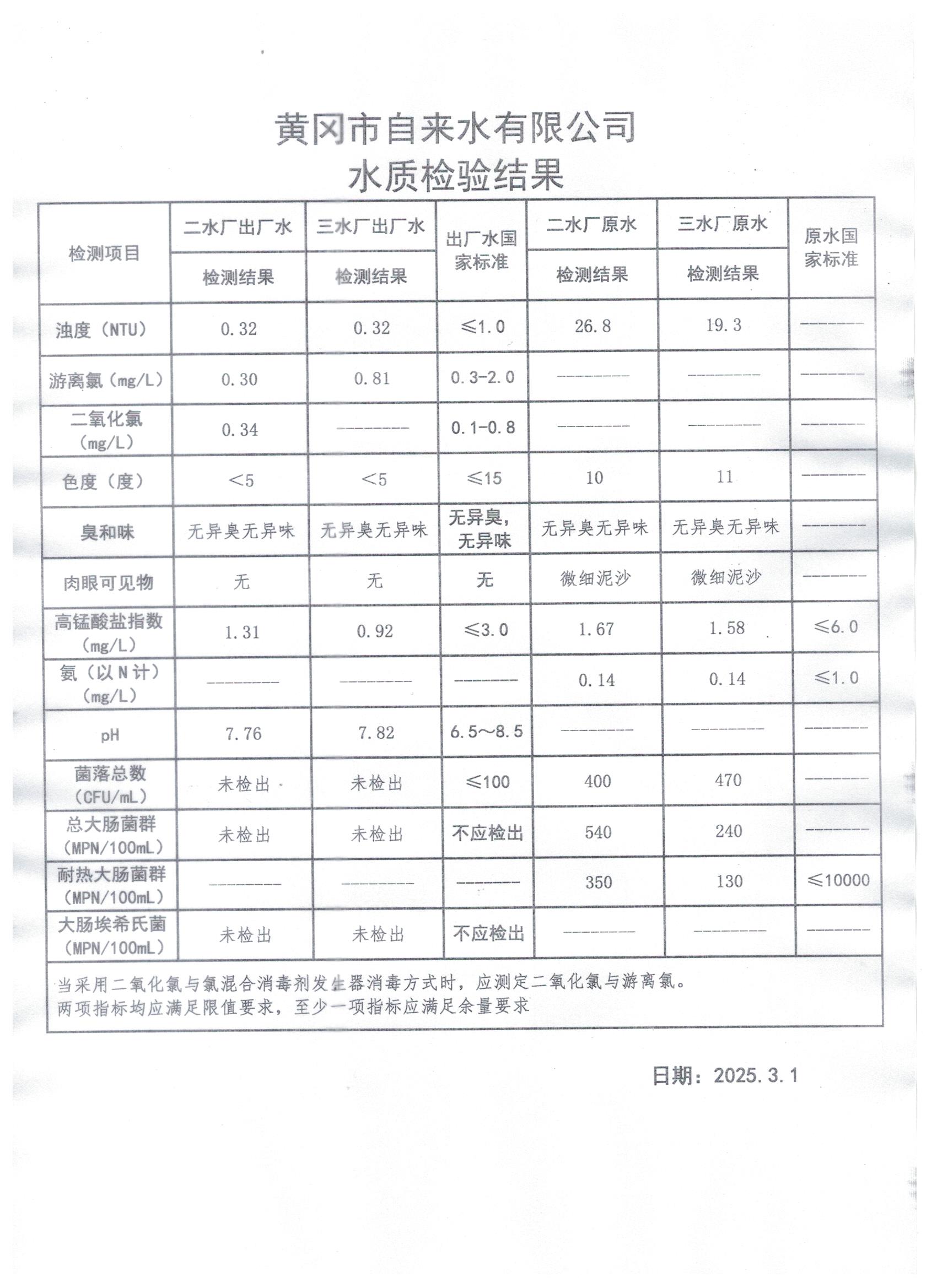 2025年3月1日水質檢測日報表