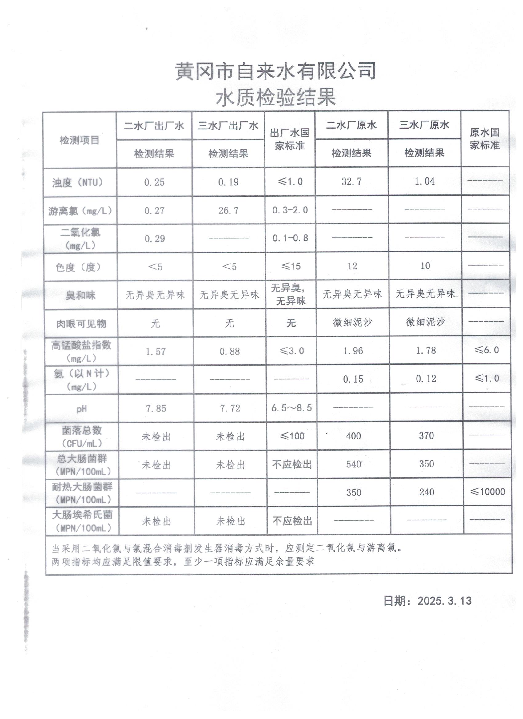 2025年3月13日水質檢測日報表