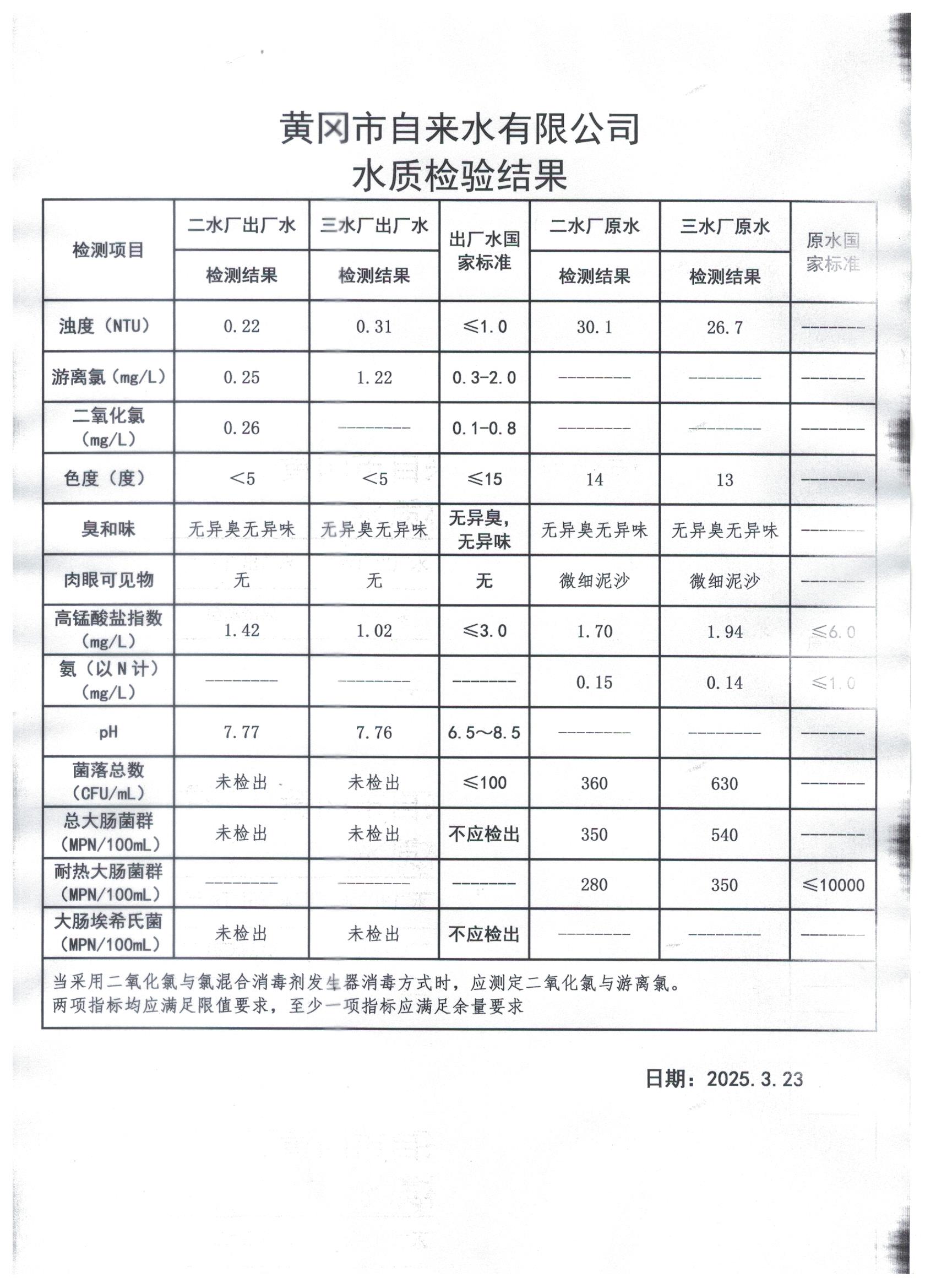 2025年3月23日水質(zhì)檢測(cè)日?qǐng)?bào)表