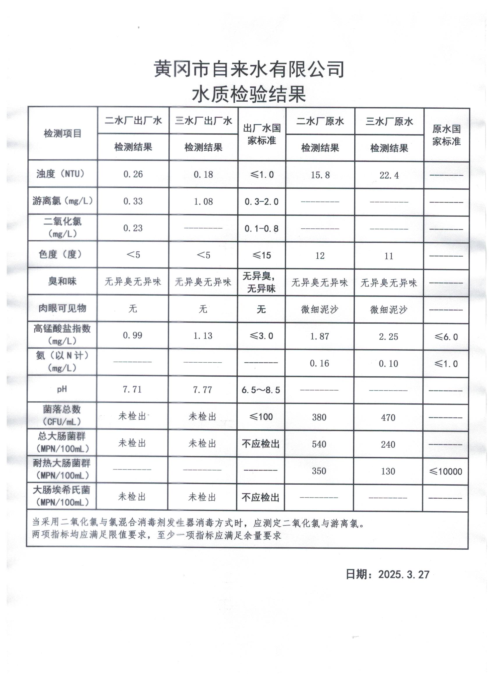 2025年3月27日水質(zhì)檢測(cè)日?qǐng)?bào)表
