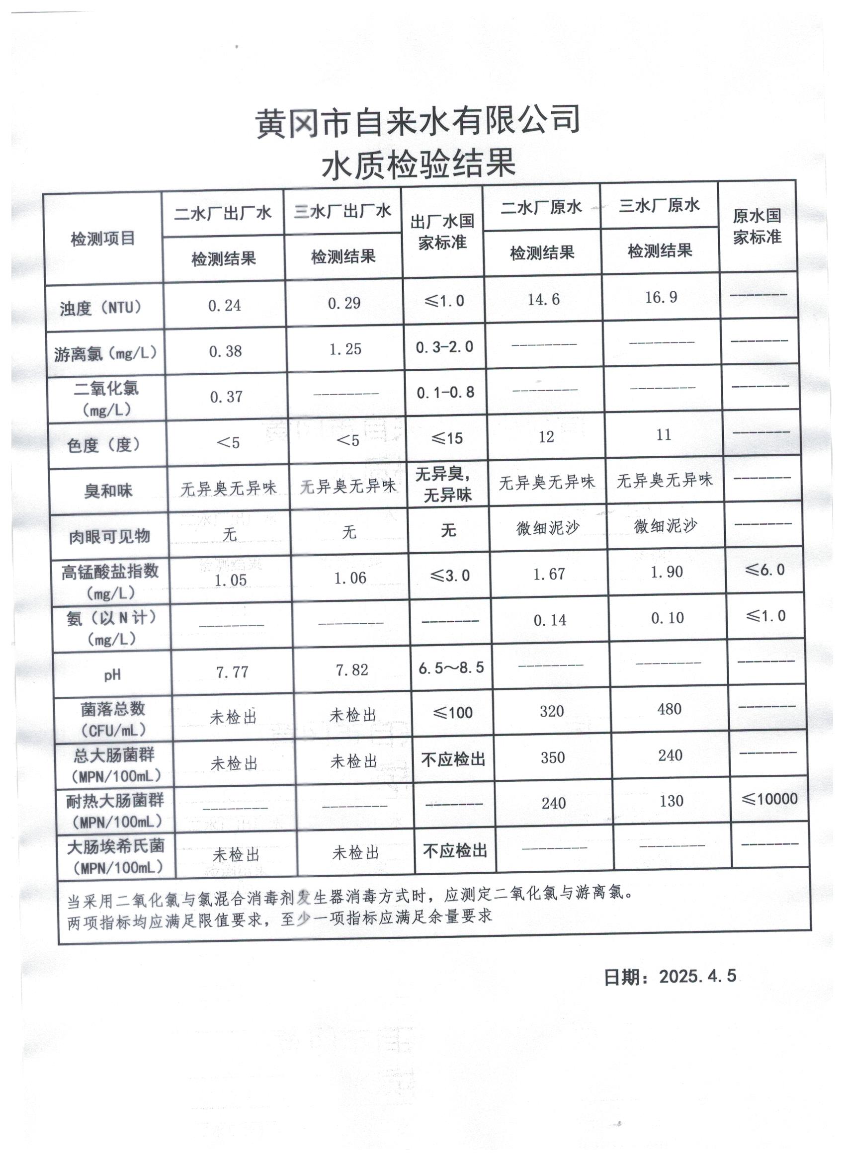 2025年4月5日水質(zhì)檢測日報(bào)表