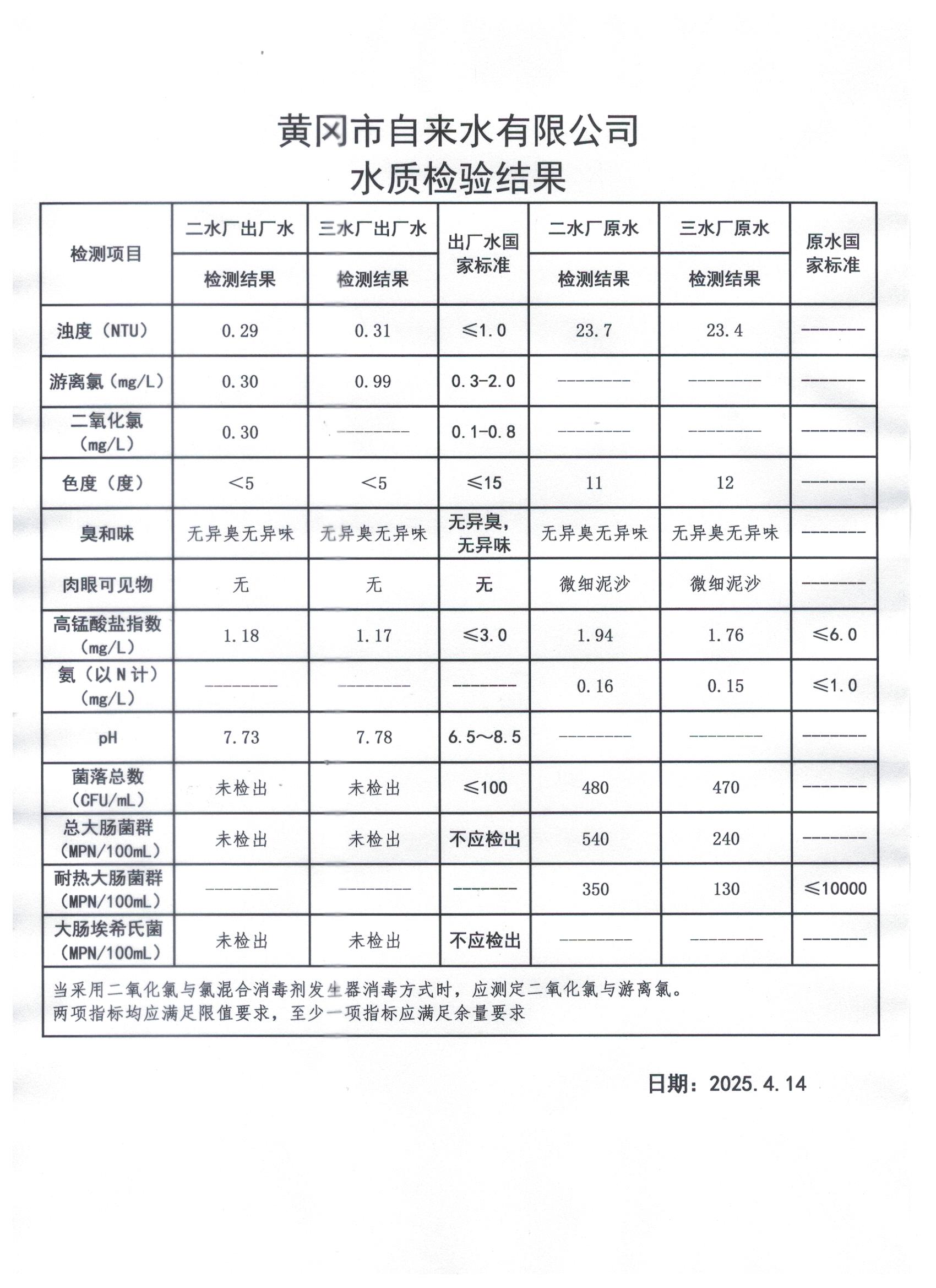 2025年4月14日水質(zhì)檢測日?qǐng)?bào)表