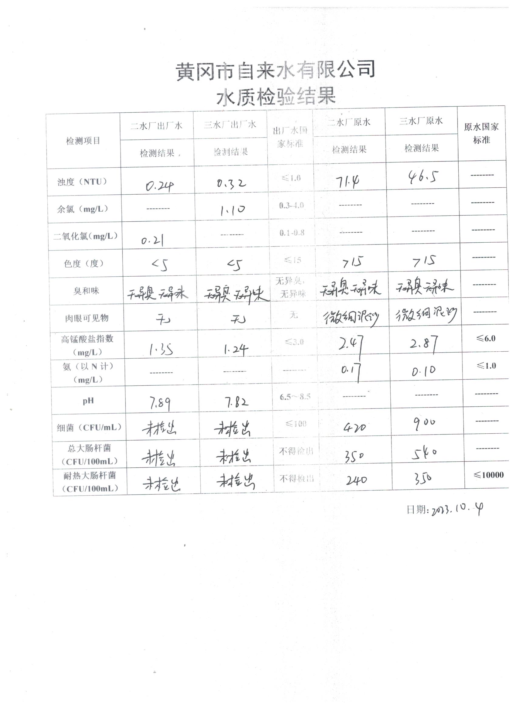 2023年10月4日水質(zhì)檢驗(yàn)日?qǐng)?bào)表