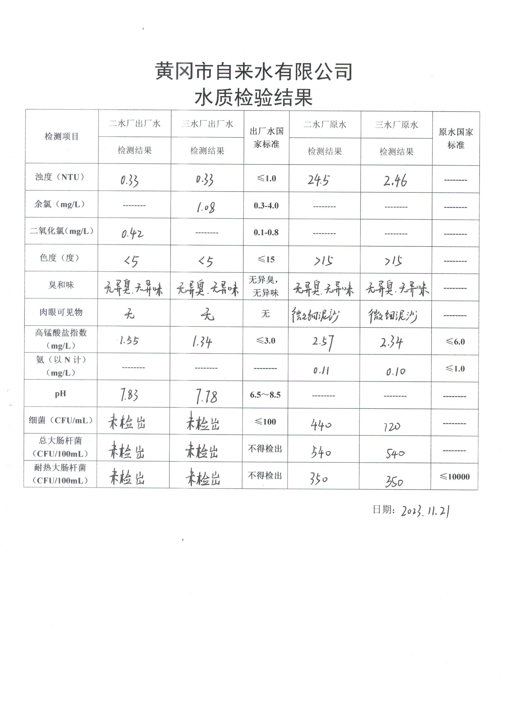 2023年11月21日水質(zhì)檢驗(yàn)日報(bào)表