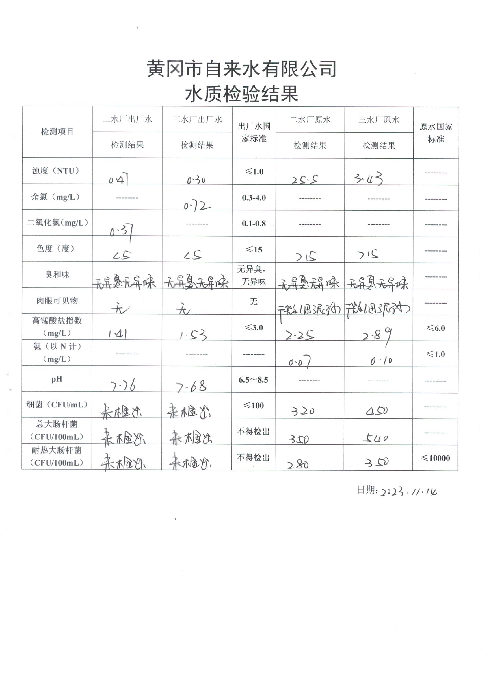 2023年11月14日水質(zhì)檢驗(yàn)日?qǐng)?bào)表