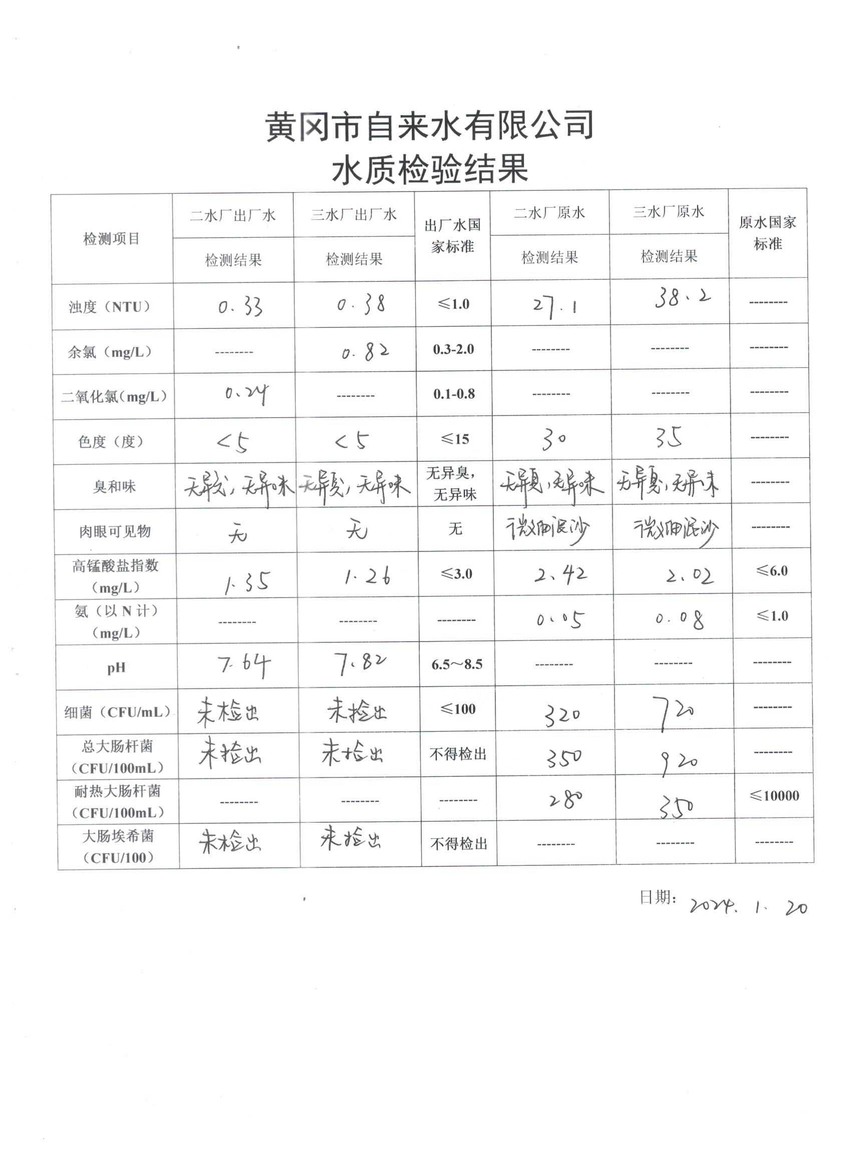 2024年1月20日水質(zhì)檢驗(yàn)日?qǐng)?bào)表