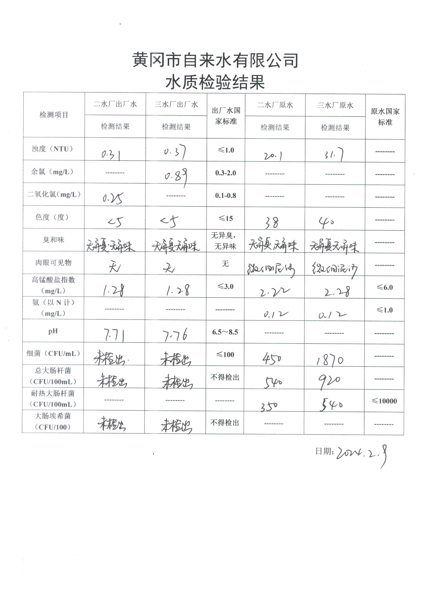 2024年2月9日水質(zhì)檢驗(yàn)日?qǐng)?bào)表