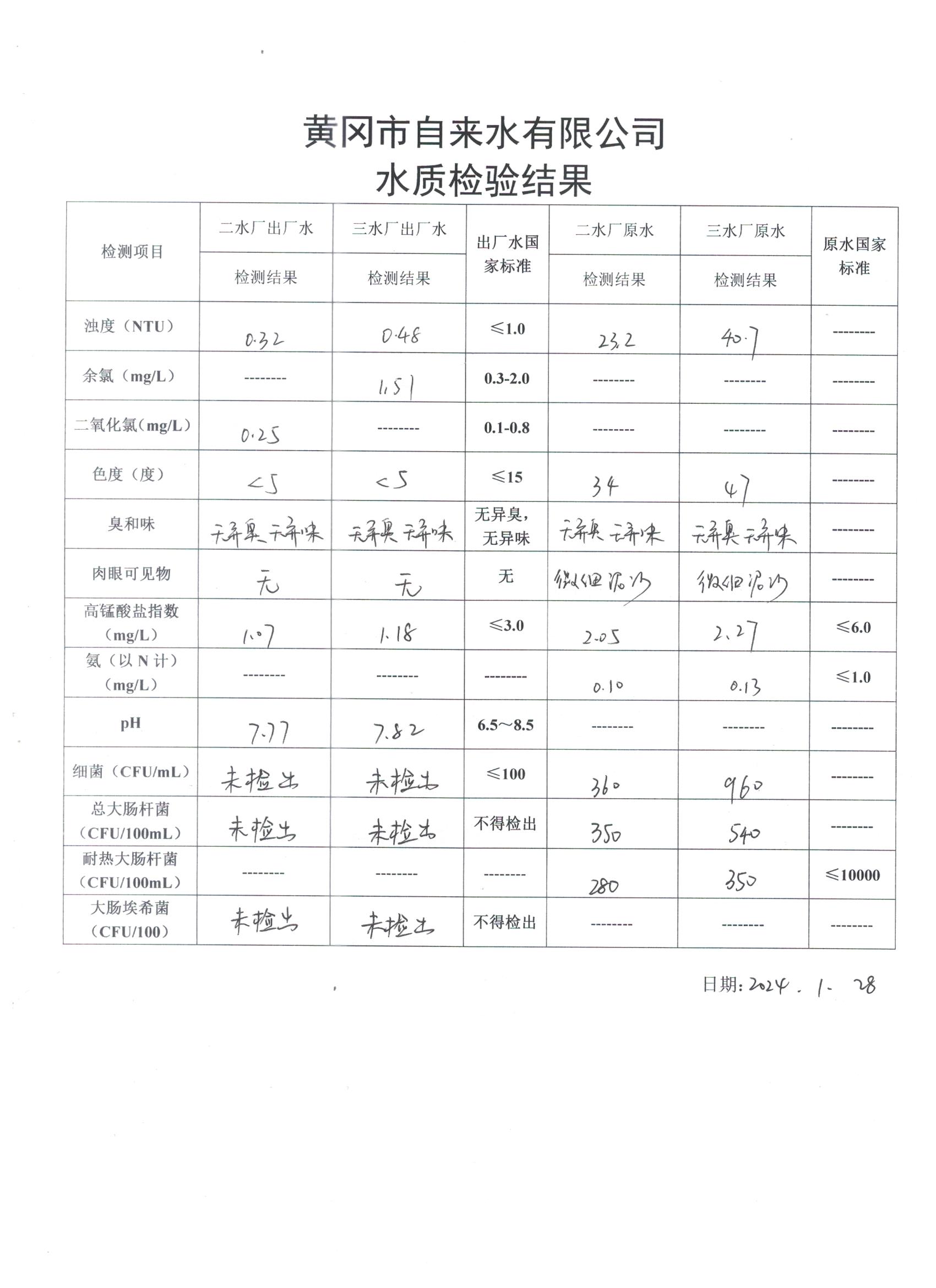 2024年1月28日水質(zhì)檢驗(yàn)日?qǐng)?bào)表