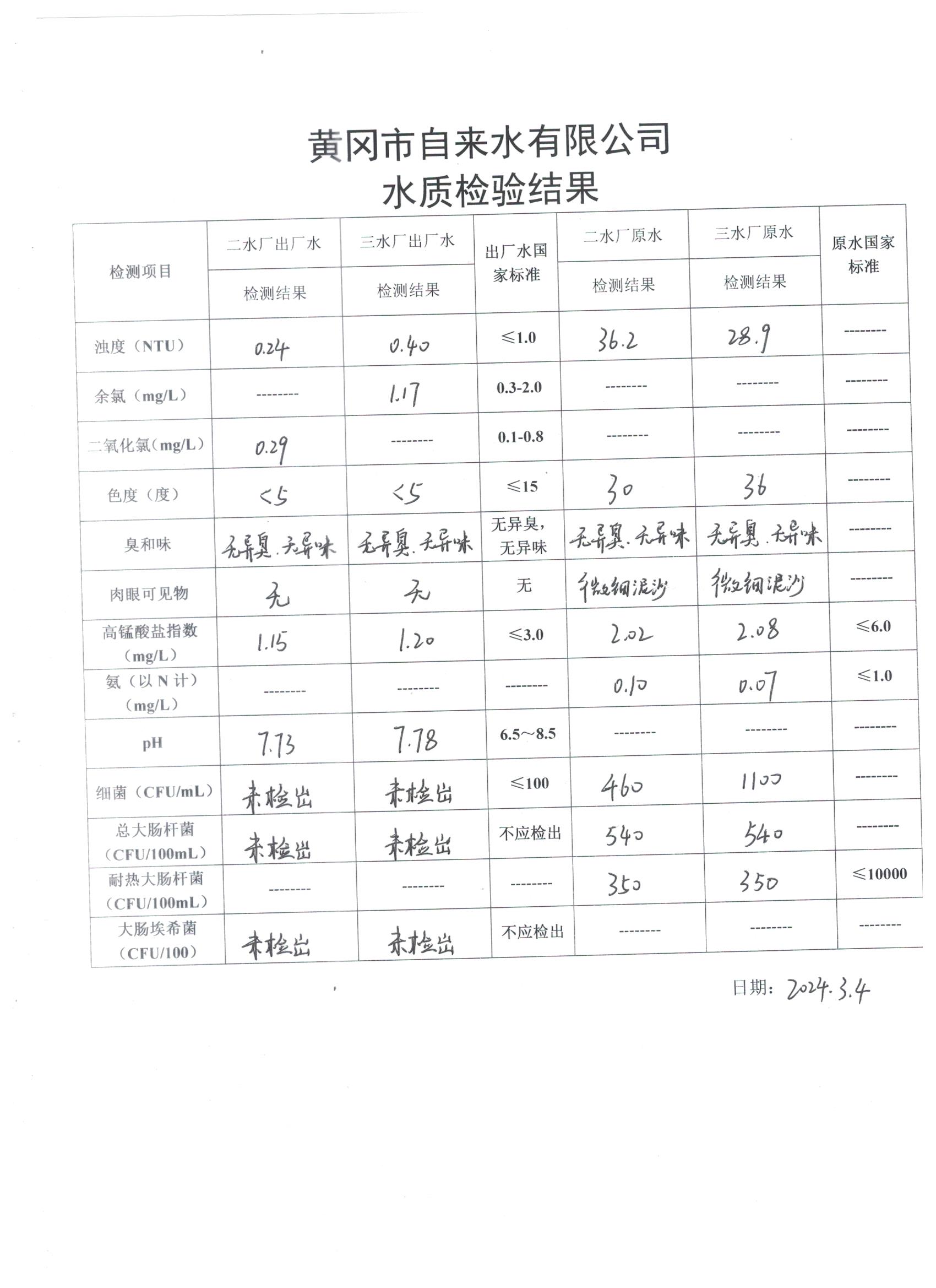 2024年3月4日水質(zhì)檢驗(yàn)日?qǐng)?bào)表
