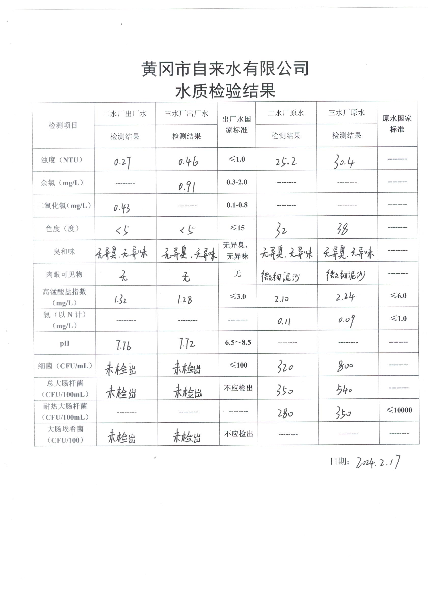 2024年2月17日水質檢驗日報表