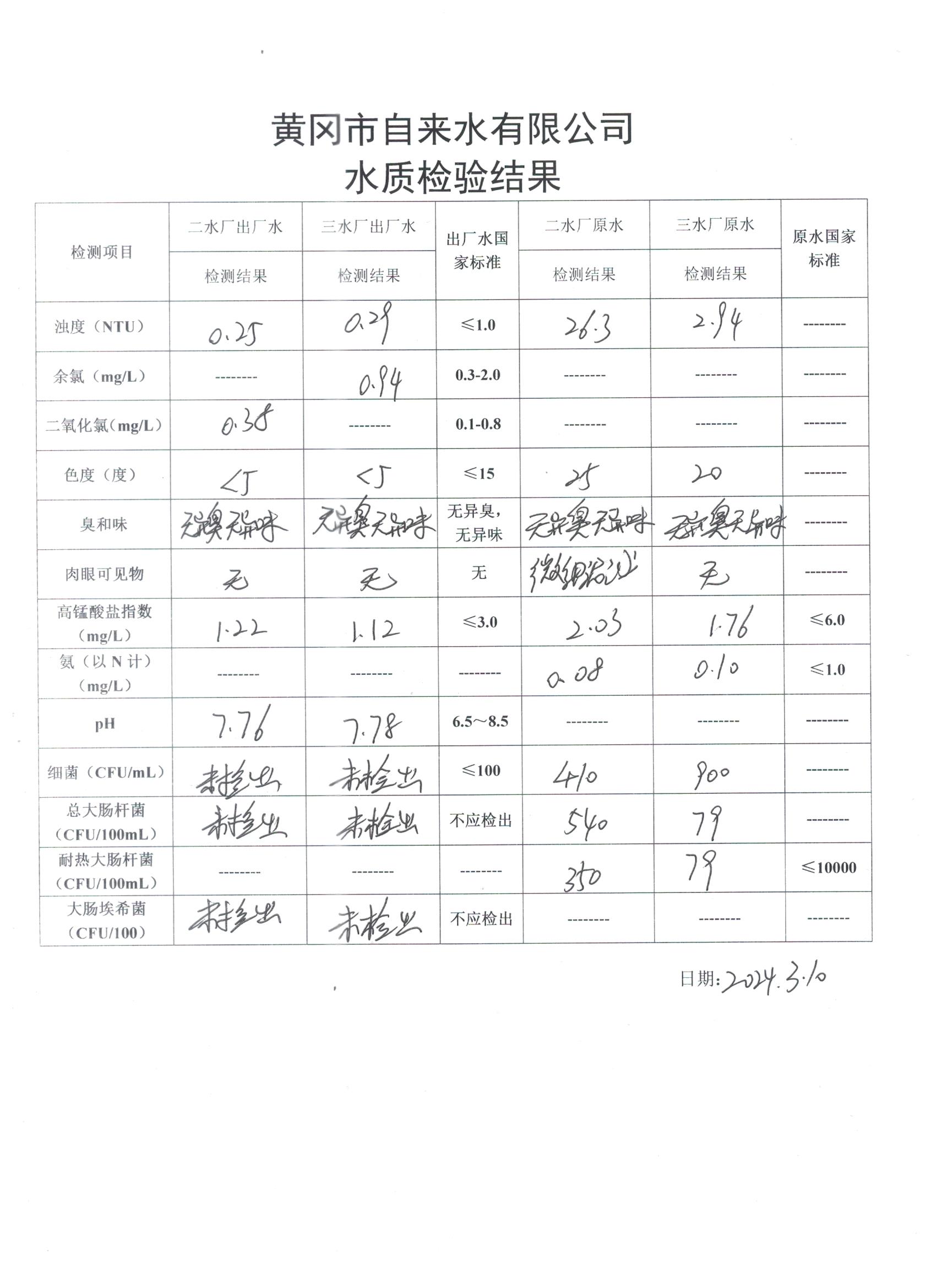 2024年3月10日水質檢驗日報表