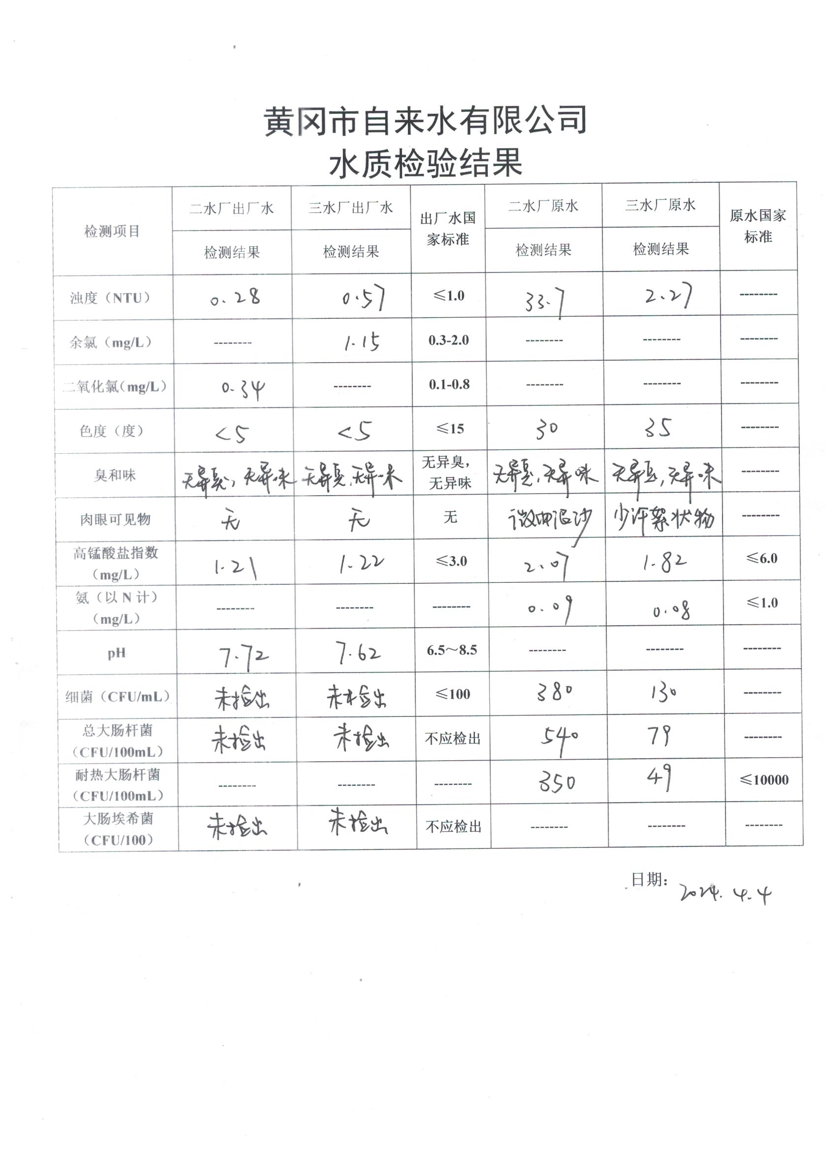 2024年4月4日水質(zhì)檢驗(yàn)日?qǐng)?bào)表