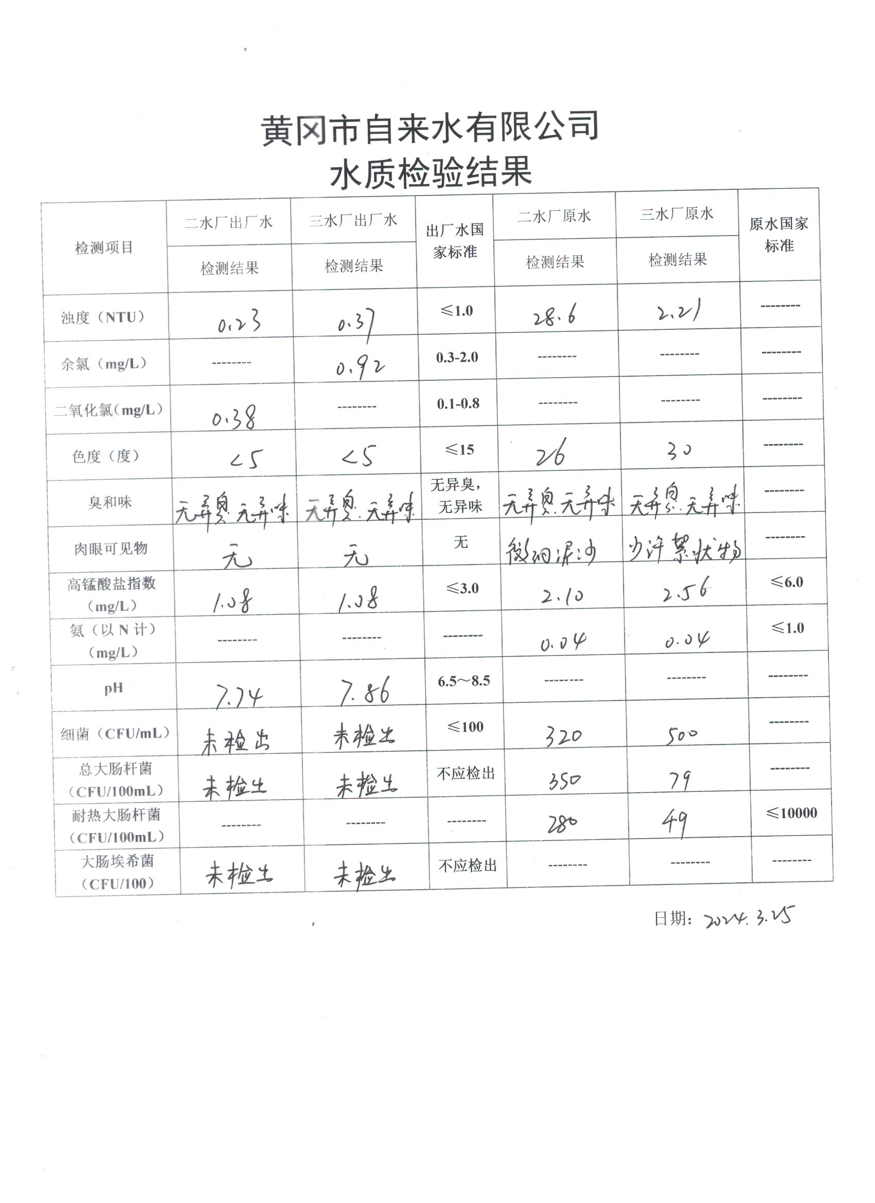 2024年3月25日水質(zhì)檢驗(yàn)日?qǐng)?bào)表