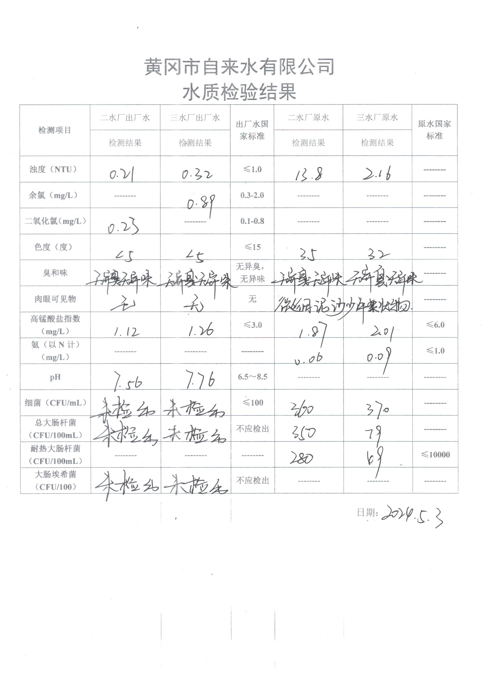 2024年5月3日水質(zhì)檢驗(yàn)日?qǐng)?bào)表