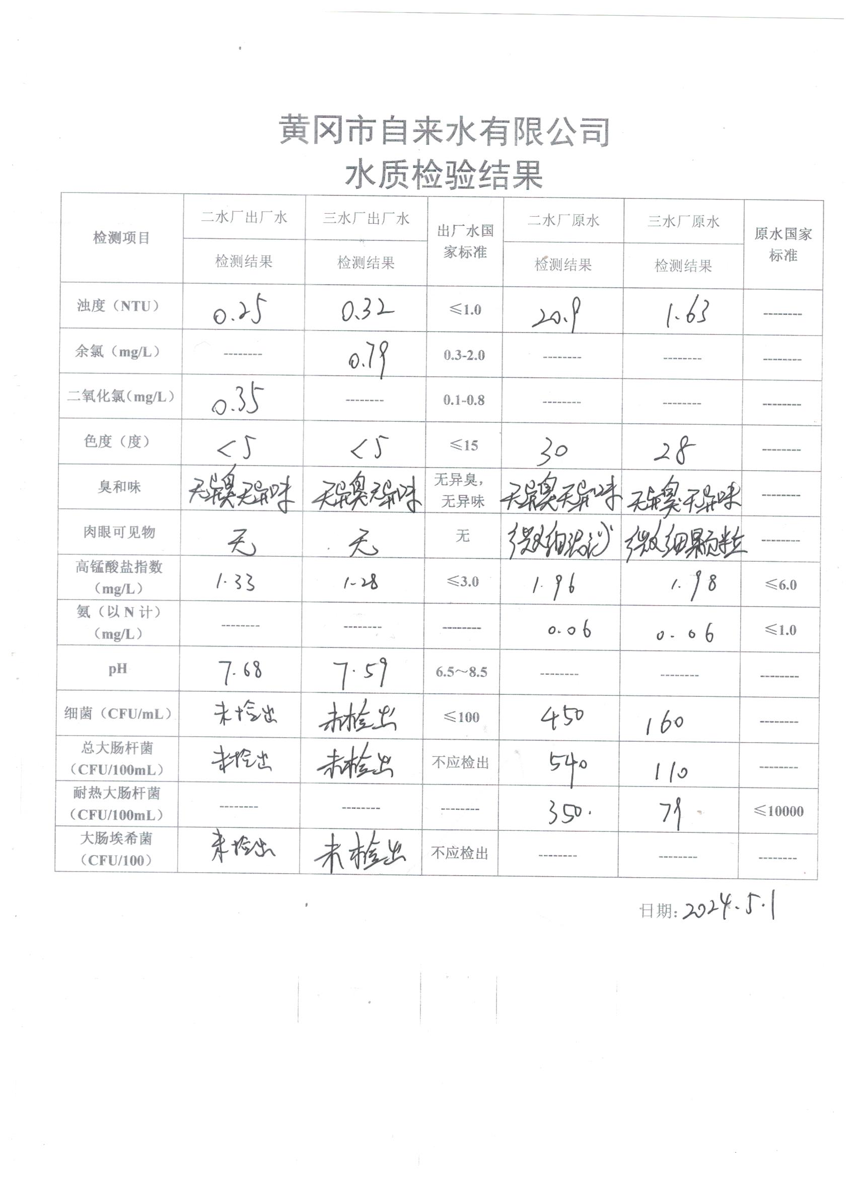 2024年5月1日水質檢驗日報表