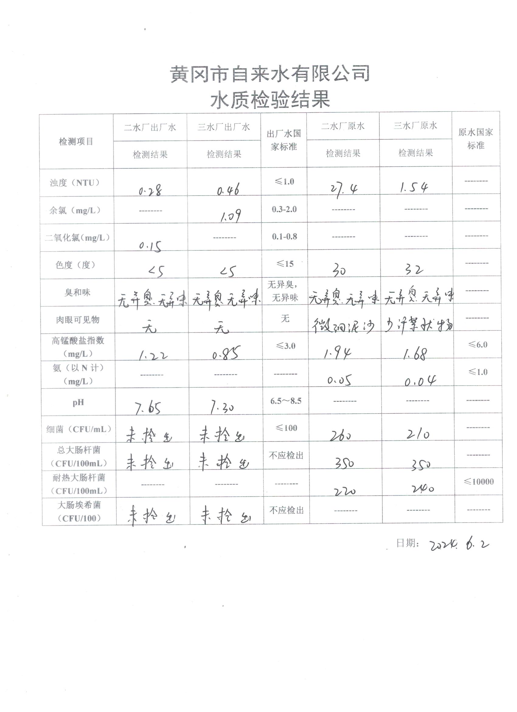2024年6月2日水質檢驗日報表